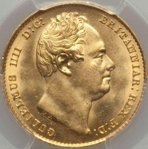 こちらは、1837年に発行された、イギリス国王であったウイリアム4世のソブリン金貨です。 国内のコイン市場では滅多に出会えないウイリアム4世のソブリン金貨ですが、そのなかでも本金貨はPCGS社のMS64鑑定を受けた、完全未使用の超一級品です。 MS64とは、Mint Stateのグレード64(製造されたそのままの状態を保つ完全未使用品クラス)であることを指し、製造時の強い輝きを残す大変すばらしい状態です。