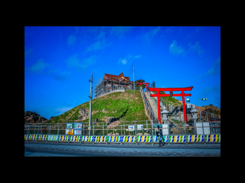 また、蕪島の頂には、蕪嶋神社があります。漁業安全や商売繁盛などのご利益があるとされていて、5月頃には周辺に菜の花が咲き乱れ、広大な青空との美しい鮮やかな色のコントラストに目を奪われることでしょう。